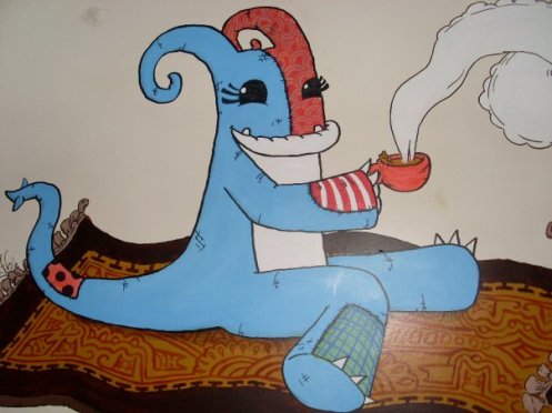 If you’ve ever been to Bar Etiquette on Sydney Road (and if you haven’t, you are missing the fuck out) you will most likely have glimpsed some of Leith’s art. In addition to his pieces hanging on the walls around the venue, he also painted some feature pieces such as the Chocolate Teapot Monster (a most lovable character), and everytime I go back there it seems there’s been something new added.