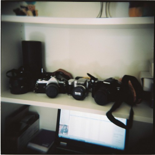 With the rest of the camera family, August 2010. (Phone by Holga)