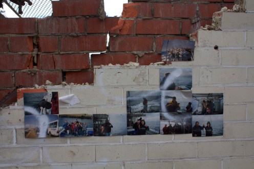 Photos from an employees' fishing trip, still on a semi-demolished wall. Photo by Murdoch80 (click for link).