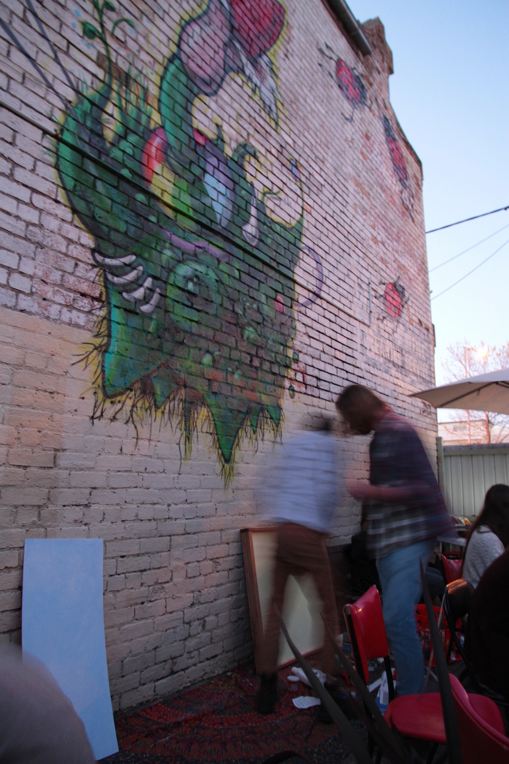 Klara did some live painting, and there were a couple of other art pieces going on, including a mysterious light installation.  Klara also demostrated why spraying Ironlak in your eye is not a good idea.  Overall vibe was pretty chilled; this place is going to be awesome in summer!  Can’t wait to try out some of I Know’s signature cocktails in the summer sun.  Might have to bring a deck chair along.