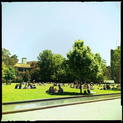 Peeps chillin’ on the lawn in the 28 degree sunshine