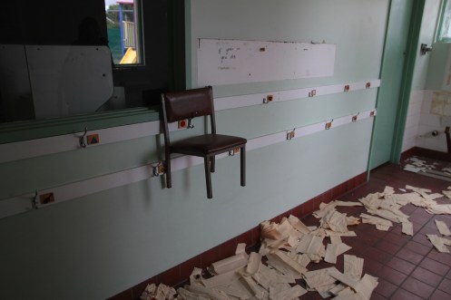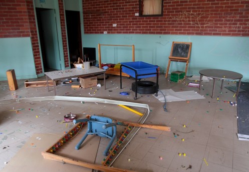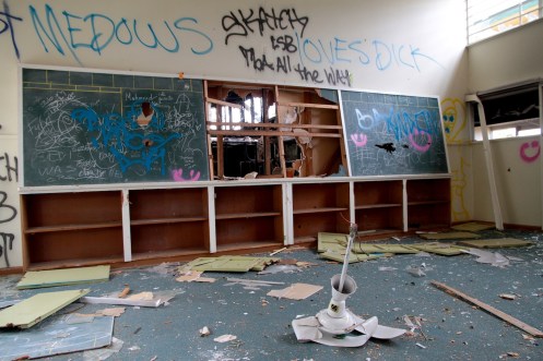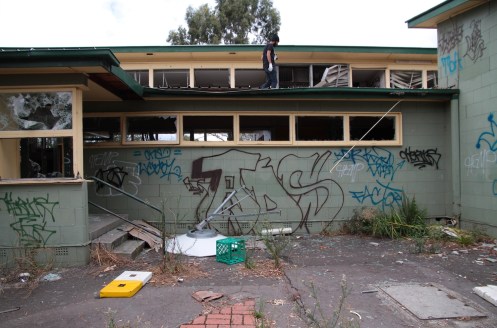 It’s been awhile between abandoned schools, and this one certainly has seen better days.  It’s amazing I even got there at all due to a beer too many the night before (or three beers too many, or maybe eight, I… can’t really remember) and sleeping in, holding everyone up.  After a cheeseburger meal hangover remedy, we discovered how difficult it is for a car full of people to navigate their way across one suburb.