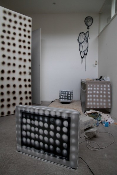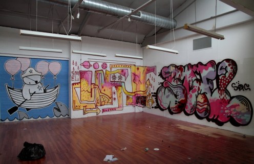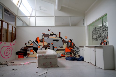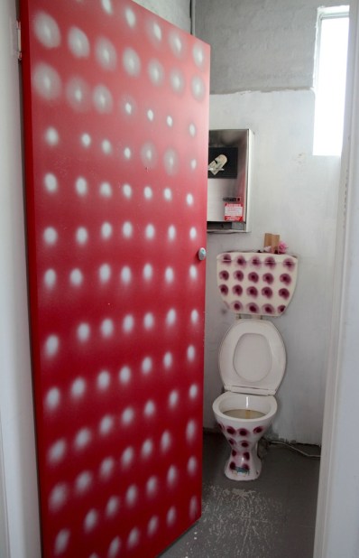 3. Looks like some of the artwork was already there; perhaps it was a design studio in its life. Good photos; my faves: the dotty computer room, the redecorated toilet and lovely puppeh! PS: How d’you get into these abandoned places?