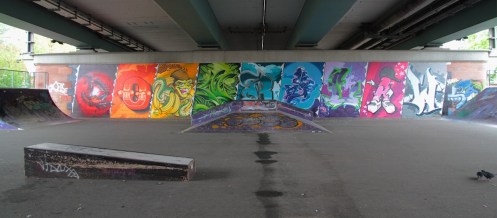 I was going to make a panorama shot of the wall next to the skate ramps, but I left one of the panels in the middle out, so I will have to reshoot them all on my way back home… whenever that may be.