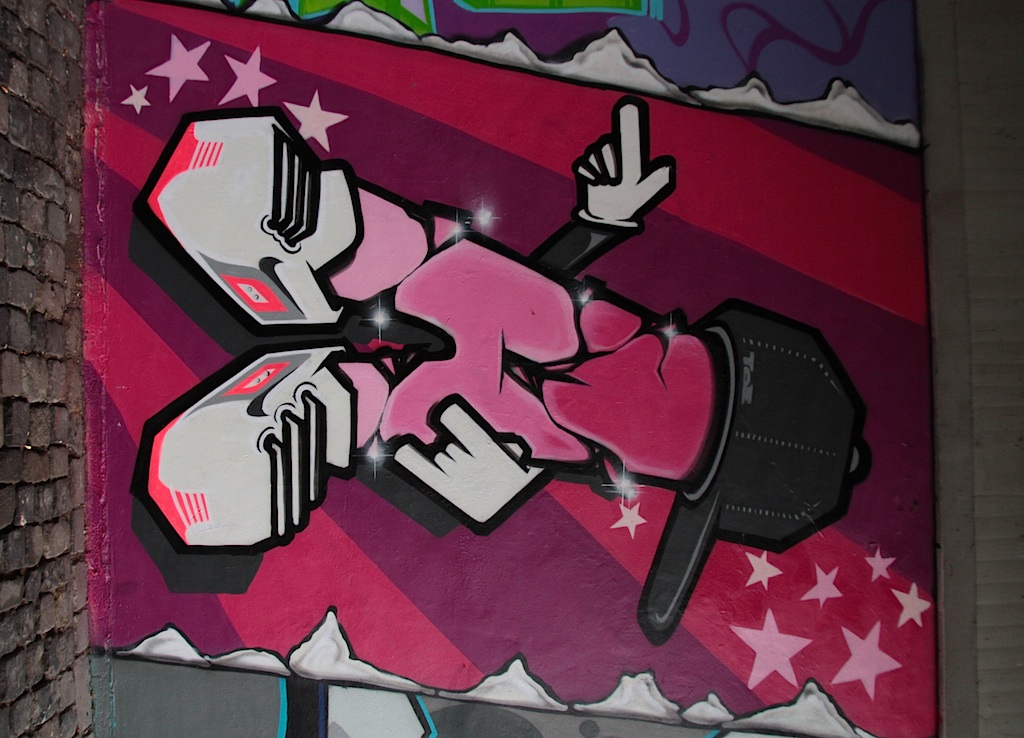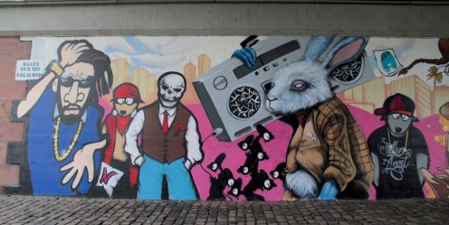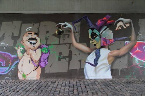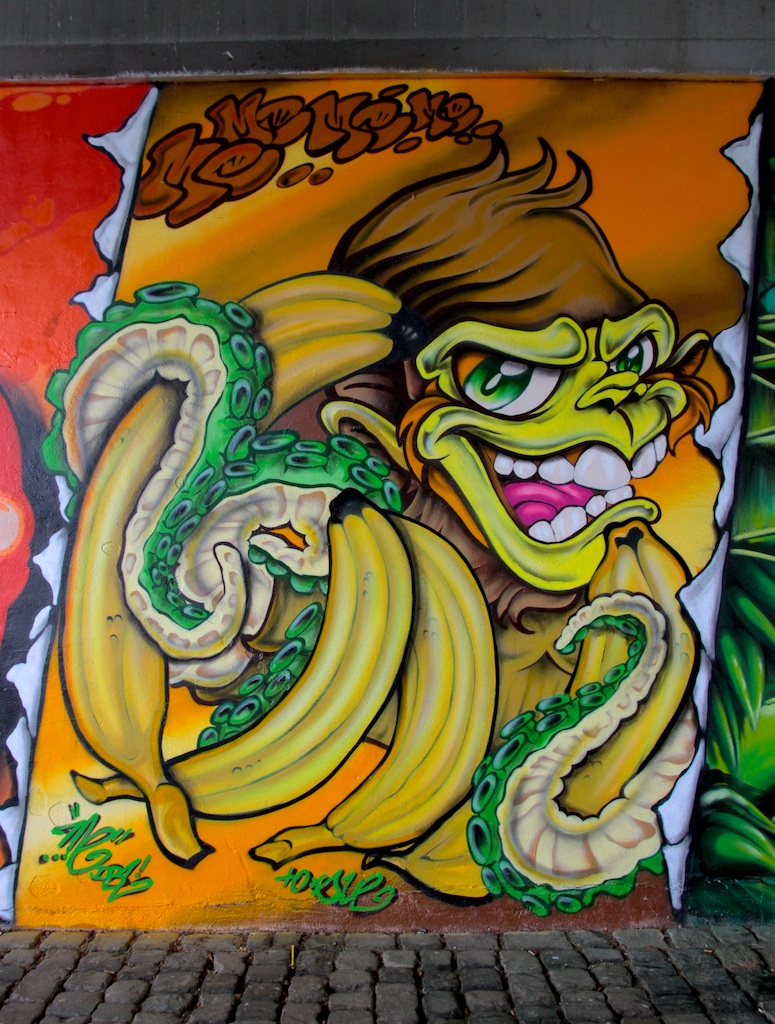 There was some awesome street art under the Frankfurt bridge where the skate park was. On the other side of the wall there was a basketball court with hoops and metal soccer goals. Aside from this, I didn’t see much street art around the CBD aside from tags.