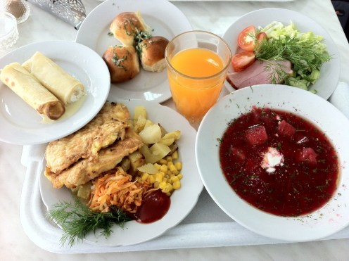 After that, it was time for lunch. Lunch was held in the big dining hall that the workers also use. We had a number of dishes prepared for us, and it was all pretty tasty (chicken coated in fried egg is a bit weird though). The soup was delicious, as were the extremely-garlicky garlic rolls, and everything had a tonne of oil on/in it (mmm). There was even dessert. They sure know how to feed people.