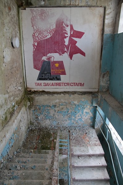 Upon returning to our hotel after lunch, we stopped to get a close-up look at the Pripyat sign. The date indicates what a young city Pripyat was.