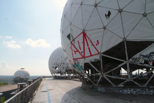I made the trek out to the abandoned spy towers in western Berlin with a couple of Melbourne chaps who are friends-of-a-friend… by “trek” I mean we caught an air-conditioned cab most of the way there, followed by a 20-minute hike up a path through the forrest. Hey, we’re on holidays.