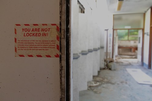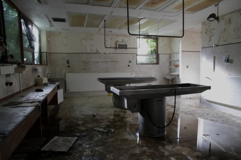 I met up with BauhausGirl from Flickr when I was over in the UK last month, and she took me to a couple of places, including an abandoned morgue.  The hospital that the morgue is attached to is still functional.