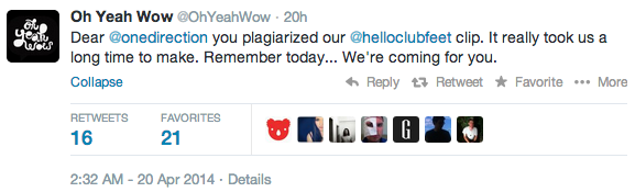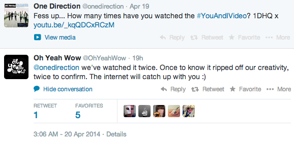 Is imitation really the highest form of flattery? Judging by Oh Yeah Wow’s tweets to One Direction I’m not so sure…